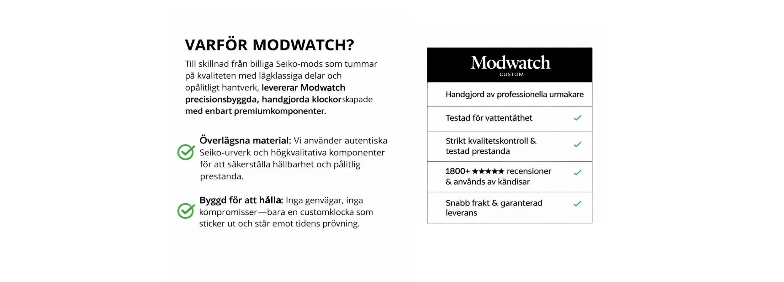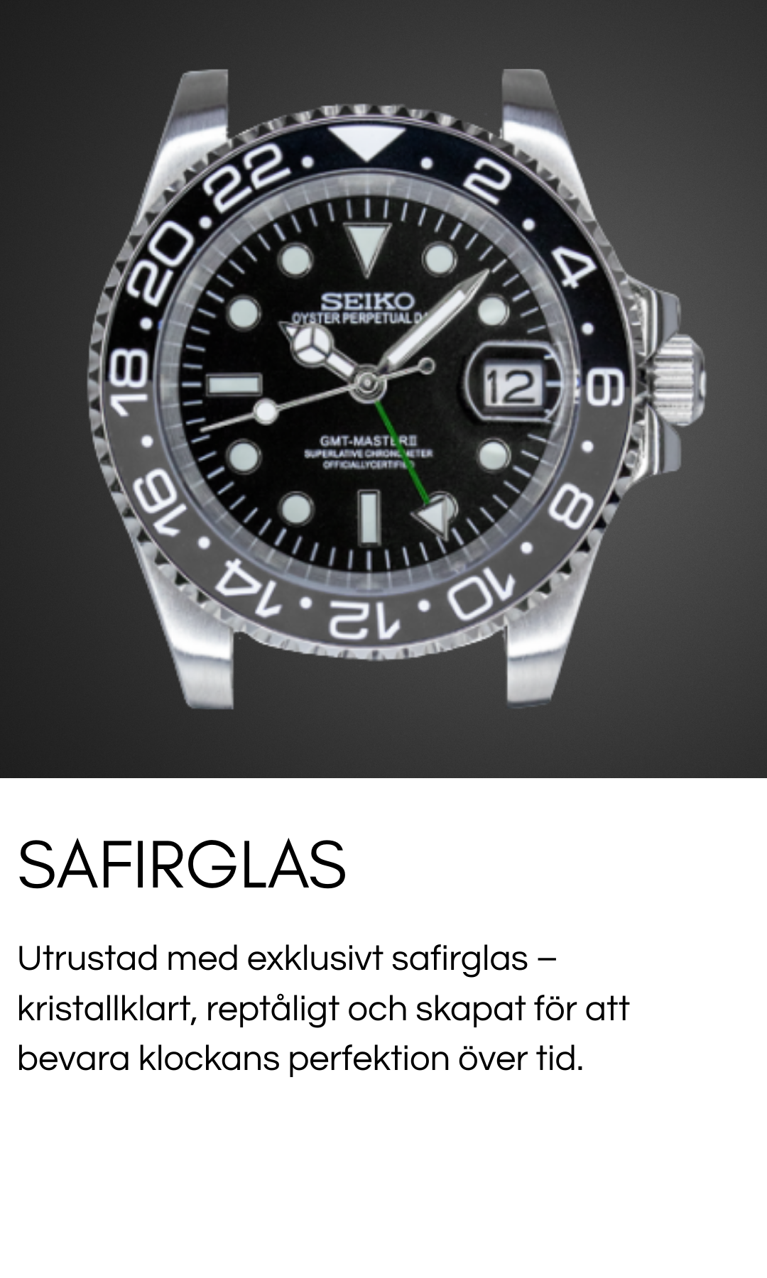 Alla klockor är specialbyggda med hjälp av tredjeparts eftermarknadsdelar i kombination med originalurverk.